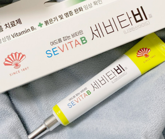 세비타비겔은 니코틴산아미드가 4% 들어간 겔 형태의 외용제로, 임상시험 시 8주 치료 기간 동안 경증~중등도 염증성 심상성 여드름 환자의 82%가 여드름 상태가 개선되었다고 보고되어 있습니다.