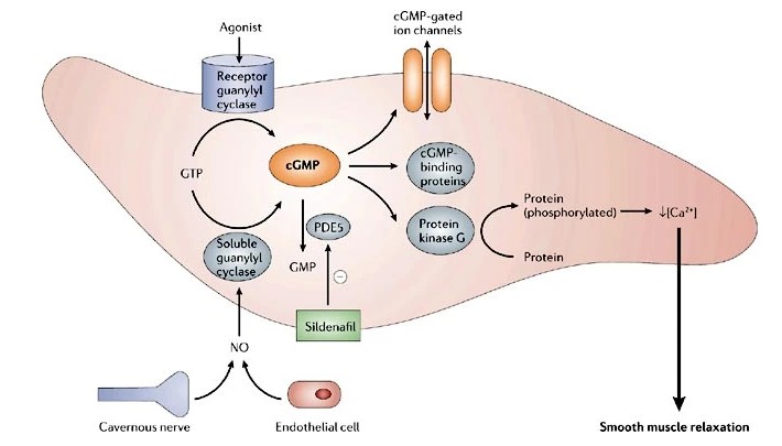 이것은 모두 NO(일산화질소)/cGMP라는 신호전달 체계에 있는 문제점을 교정하여서 NO가 더 많이 나오게 도와줍니다.