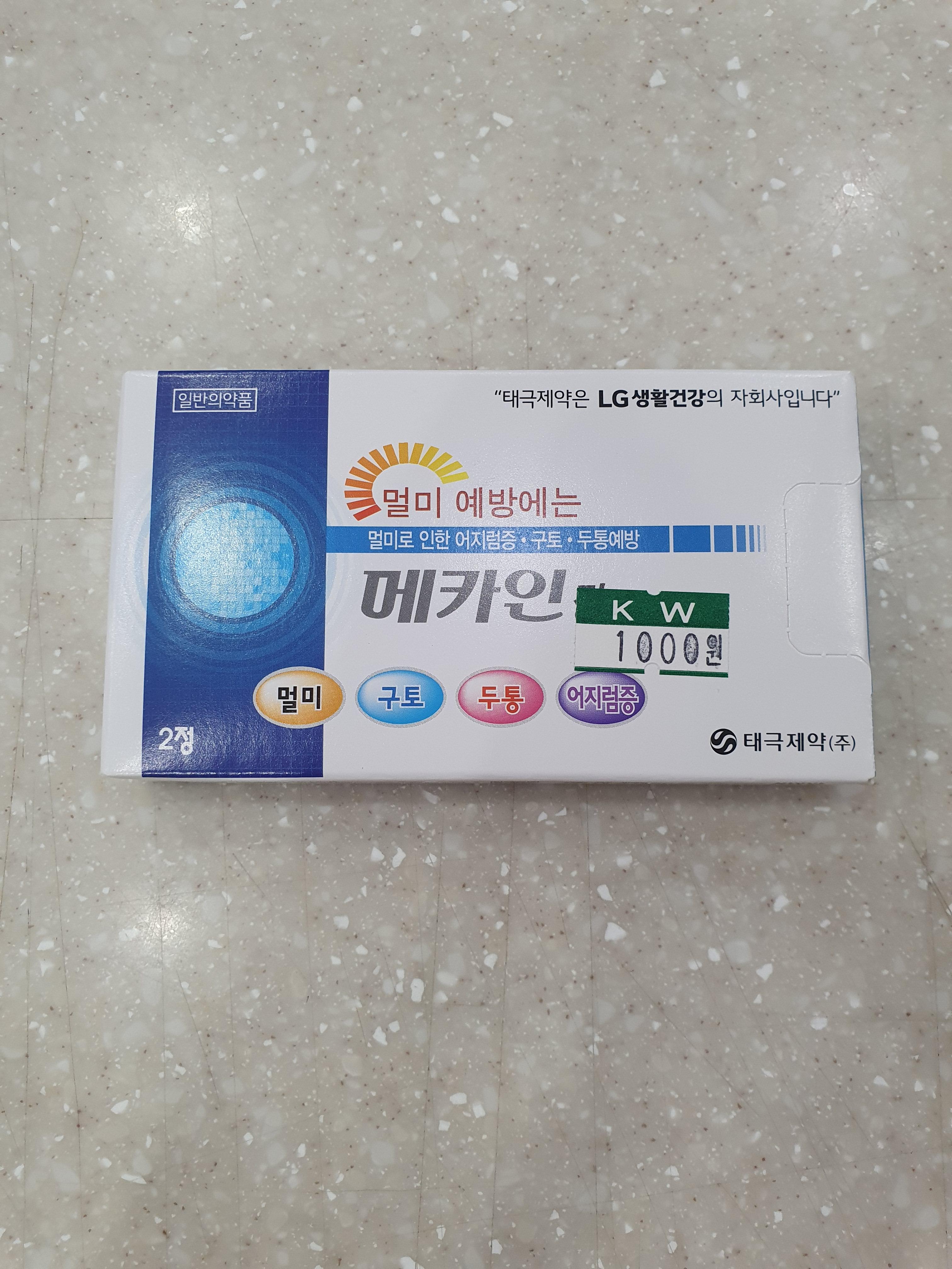 | 정제 | 메카인(2정) | 메클리진, 스코폴라민, 카페인 | 1,000 | 만 12세 이상 |
