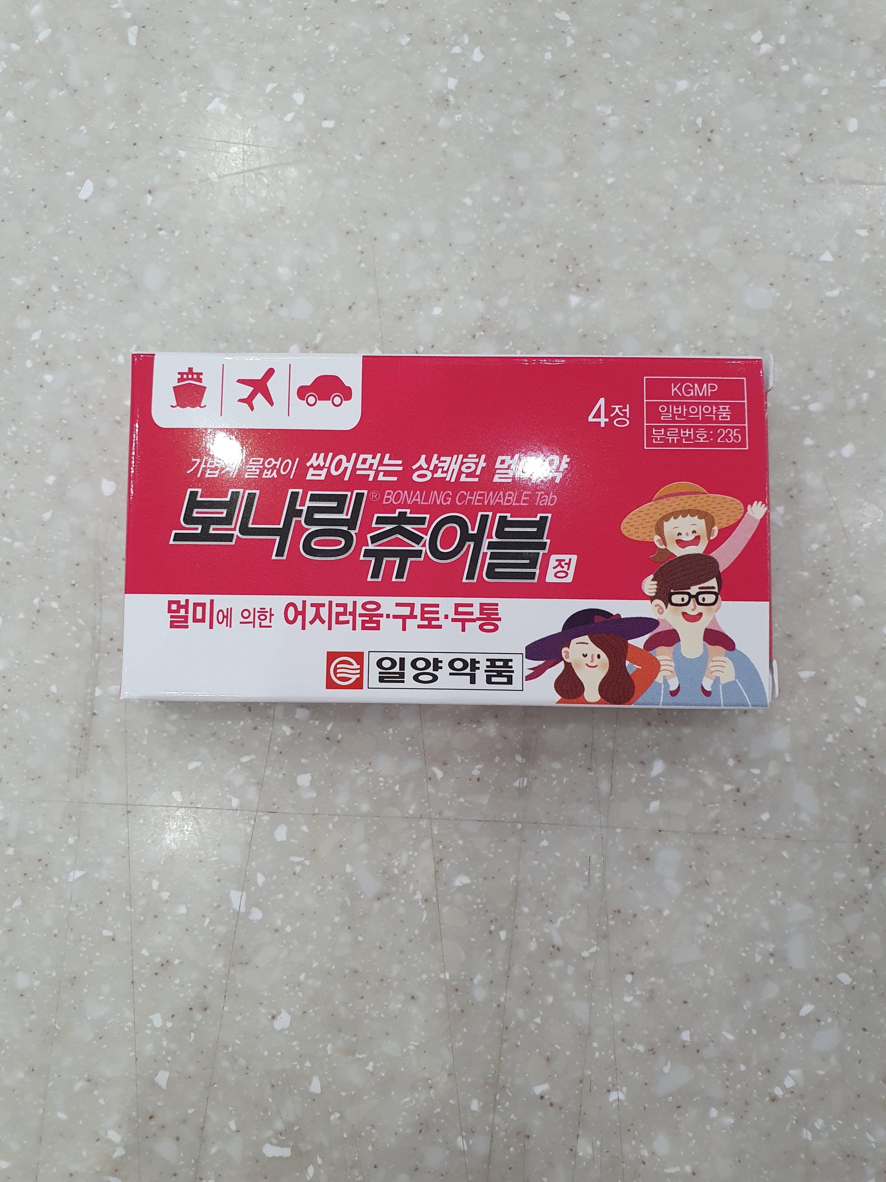 | 츄어블정 | 보나링 츄어블(4정) | 디멘히드리네이트, 스코폴라민 | 4,000 | 만 8세 이상 |
